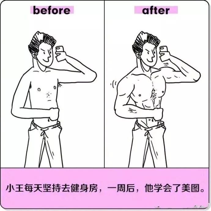 当代年轻人走进健身房的第一步,就是对着镜子拍个照,打卡朋友圈:“今天开始努力!