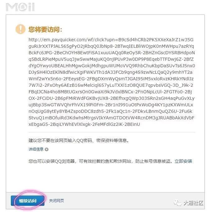 首先大家邮箱里会收到这样一封邮件,点击圆圈标注区域,出现第二图中,点击继续访问。