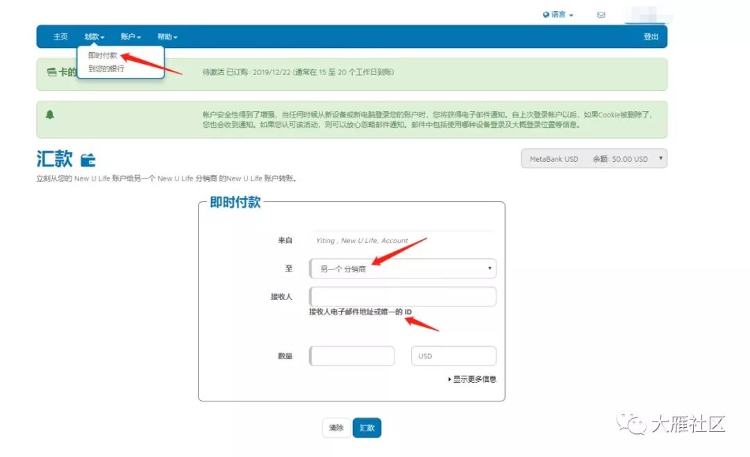 果然!跟公司说的一样,我们的电子钱包非常非常强大!!哪怕没有卡片,各个经销商直接可以直接电子钱包免费汇款!