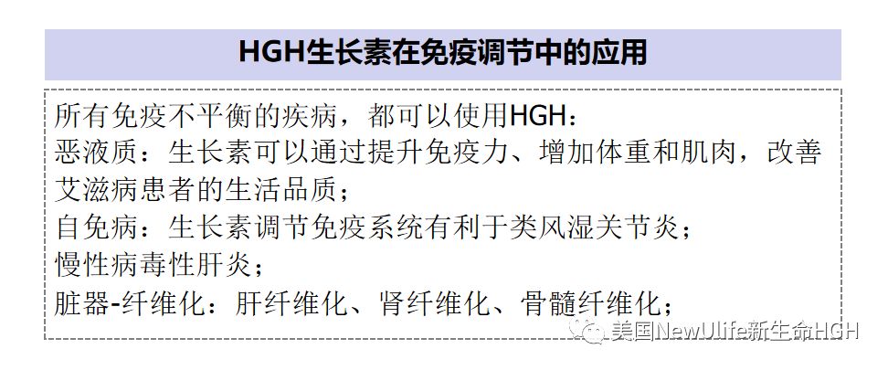 2、HGH对于免疫因子方面的调控,使它产生很多对于广谱的免疫调节剂,相当于疫苗接种的增敏剂。