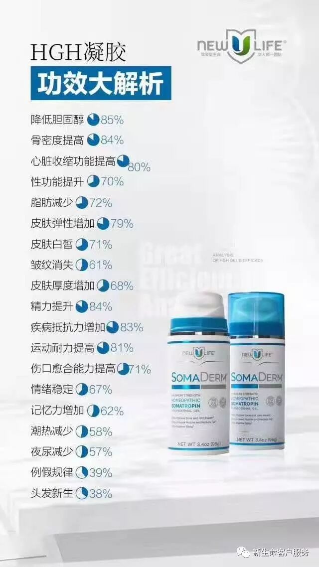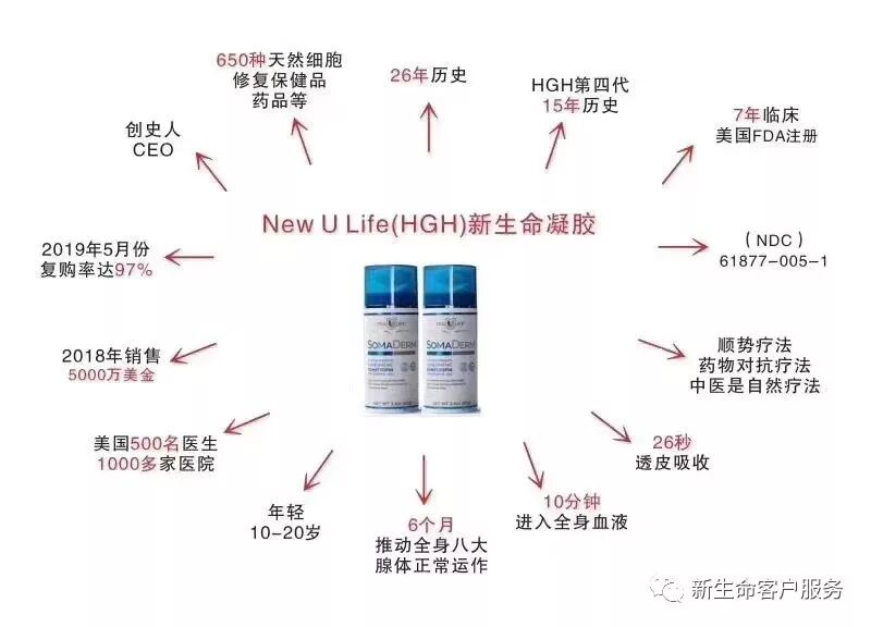 New U Life是美国一家26年的制药的公司,目前旗舰产品Somaderm HGH凝胶(人体生长荷尔蒙)已经在美国的各大药房销售了14年,售价320美金。