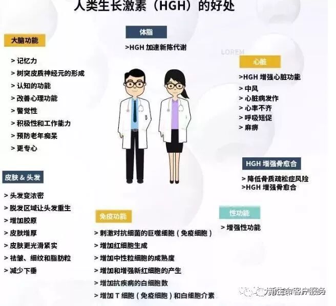 看完了这八大腺体分泌的荷尔蒙,相信大家对荷尔蒙有一定的了解了,所以,人类生长激素(HGH)对人类的影响也就不言而喻了。HGH的缺失,是导致人类衰老的关键,如果能补充HGH,人类将会获得哪些益处呢?说白了,就是身体机能年轻化。想想你年轻时是什么样子的?皮肤充满弹性、精力充沛、睡得好、关节活动自如、没有白头发等等等等……