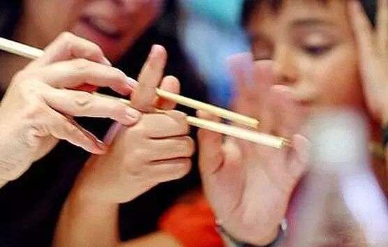 当我们第一次学用筷子时,是长辈手把手教会的。筷子在使用时,得一根动,一根不动,这样才夹得稳。小小的手握着长长的两支筷子,几番尝试,终究难以夹起米饭,每每心中沮丧时,长辈便会严肃地说:“我们是中国人,中国人都会用筷子”。