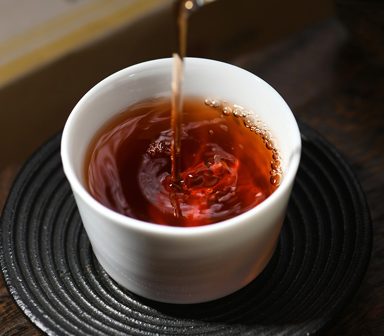 而普洱熟茶的口感,如其名般“稳重”,一如既往的醇厚和温和。生茶熟茶,一个像春天,百花齐放,容易让人一见钟情;一个像秋天,温馨静美,抬手举足间是成熟。