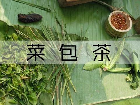菜包茶是云南乌蒙山苗族的一道特色菜,具体做法是将茶叶用洗干净的大白菜或者青菜包好,放在火塘的炭灰中焐熟。