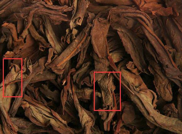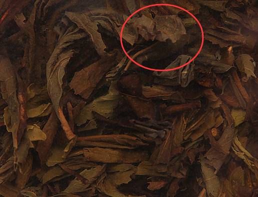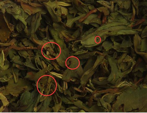 红圈内即为有焦糊情况的茶叶