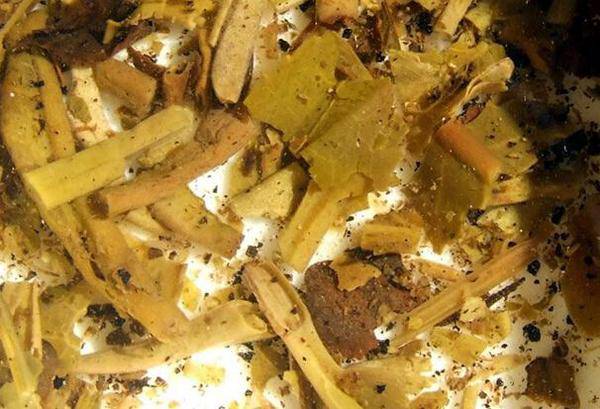 图片为质地干硬型的熟茶叶底
