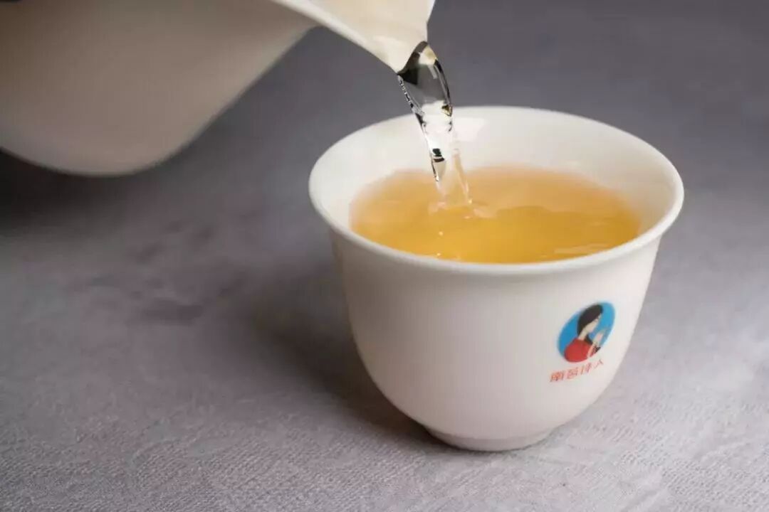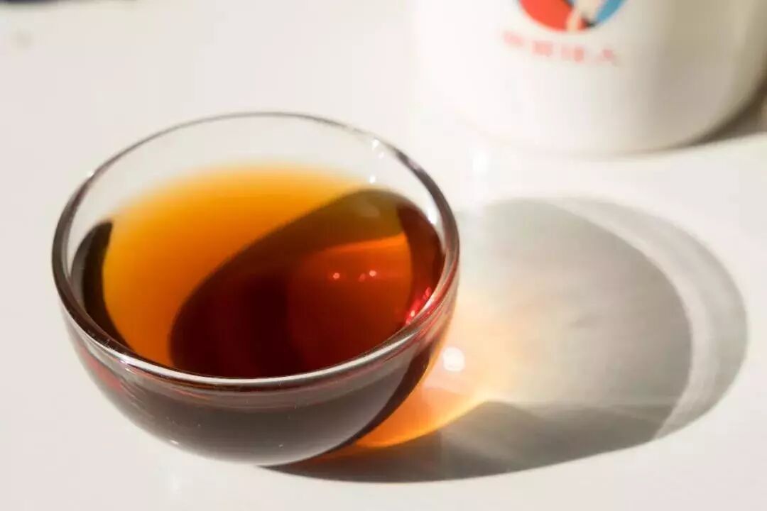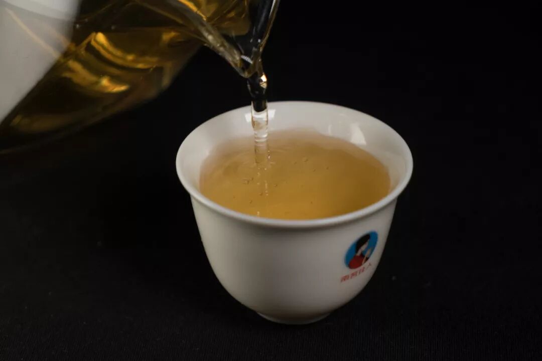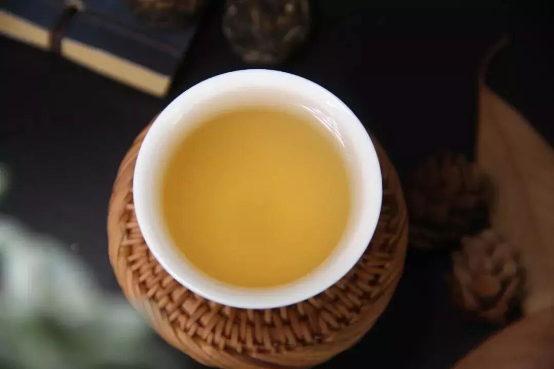 汤色:汤色透亮,明黄,可判断为昆明仓,如若汤色石榴红,可为广东仓。