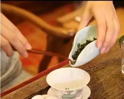 冲泡前,可先用开水温杯一下,再放入7~8g铁观音干茶。进行温润洗茶后,为保护细嫩的茶叶表面的绒毛及避免茶叶在杯中激烈的翻滚,应沿着白瓷盖碗或玻璃杯的杯壁细细的注入水,可保证茶汤的清澈亮丽。