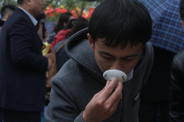 茶叶评比时嗅闻盖香是评价茶叶品质的一个方法 拍摄:紫笋