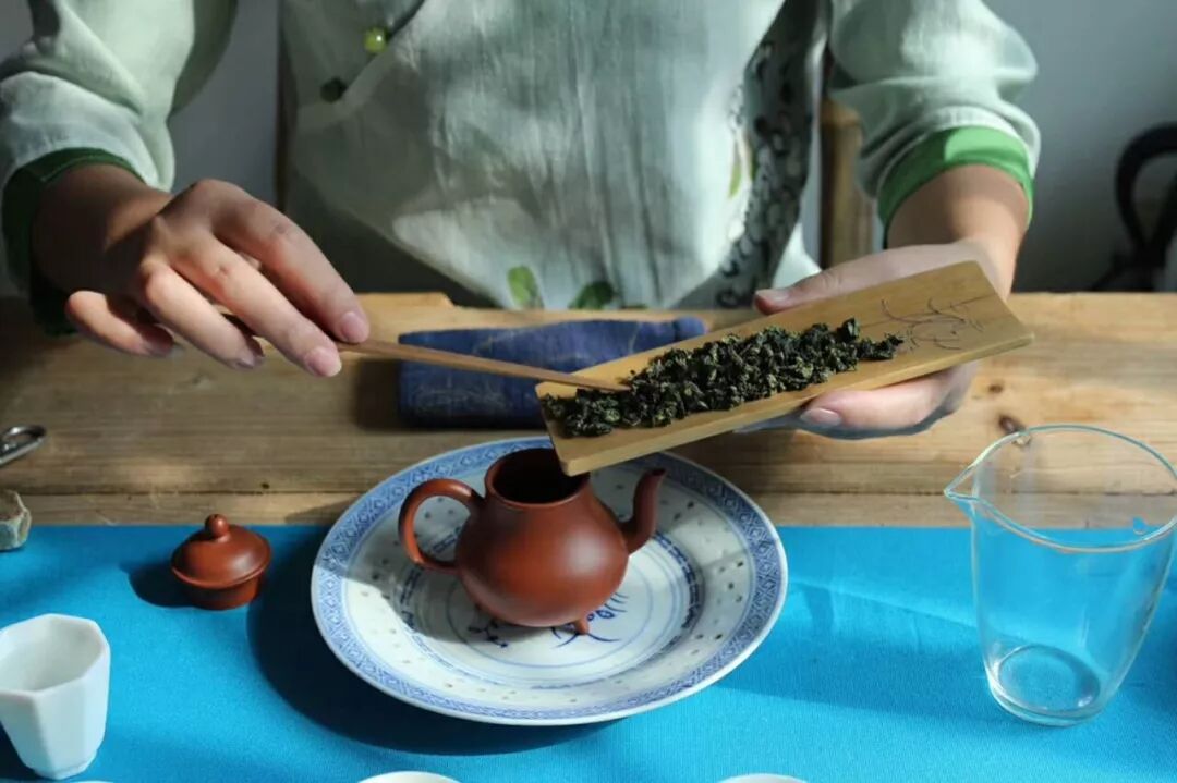 ③由于盖碗是白瓷制造,不吸味,导热快。安溪铁观音外形紧结,干茶与展开后的体积相差较大,盖碗有利于其叶面的伸展,以鉴赏叶底。