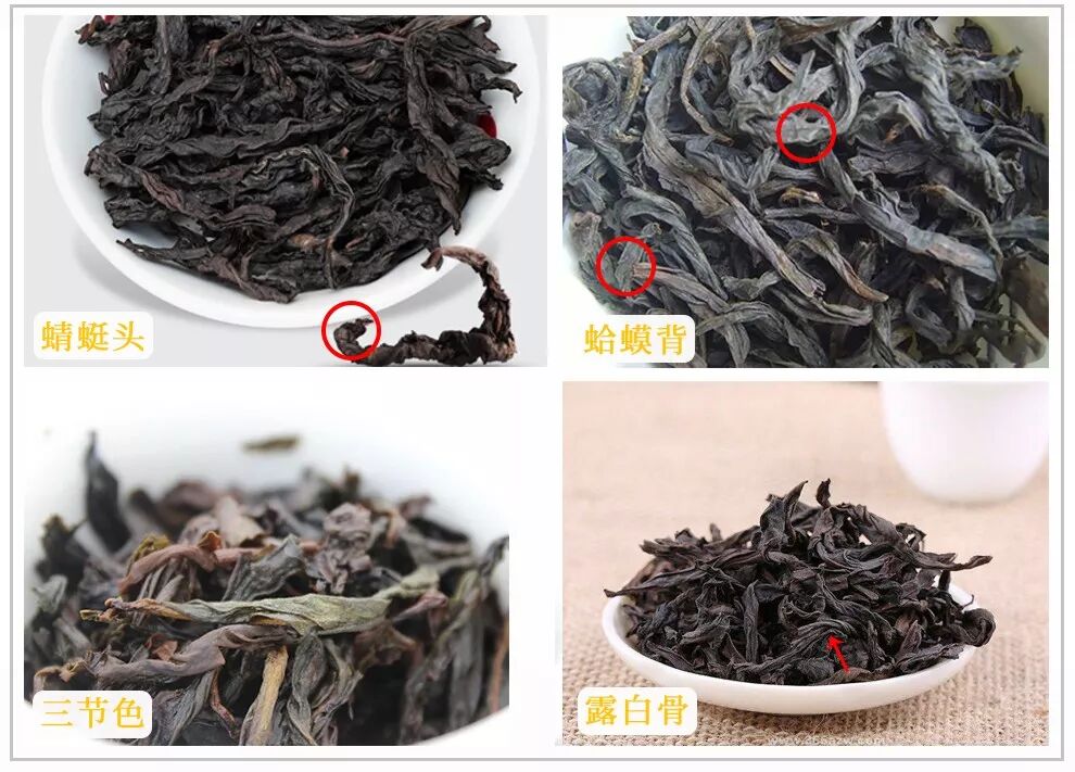 三节色:条索颜色;一般是头部呈乌褐色,中间呈现青褐色,尾部呈现红褐色,这是武夷岩茶特有的成色特征。