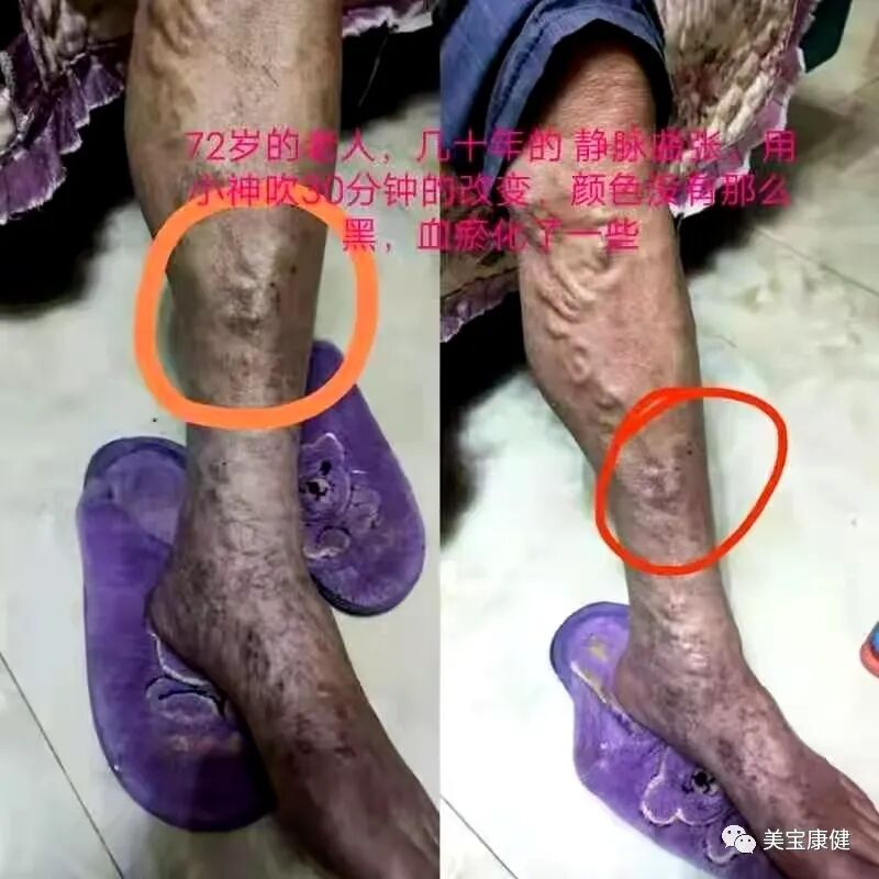 静脉曲张:微循环问题,督脉打通,再吹患处。先吹整个背部,加强督脉,再手心、脚心,再吹静脉曲张位置,共60分钟。先吹整个背部,加强肺区30分钟,再吹问题部位30分钟,共60分钟。