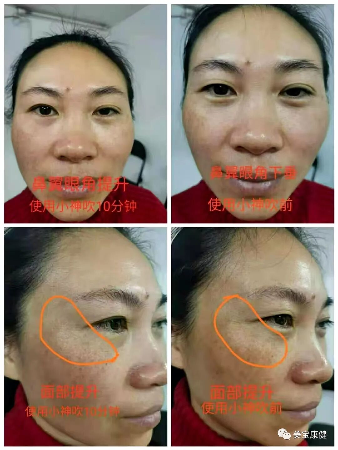 面部:面部是身体的镜子,配合吹背,调理脏腑。先吹整个背部25分钟,再吹面部20分钟,共45分钟。手拿着小神吹往面部上吹即可。