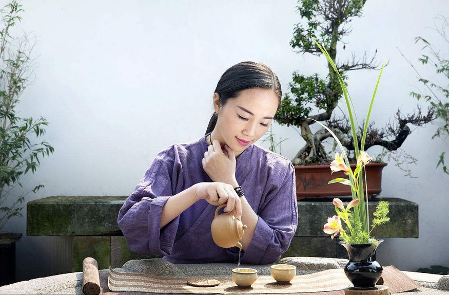 第四道——投茶:清宫迎佳人。 苏东坡有诗云:“戏作小诗君勿笑,从来佳茗似佳人”。“清宫迎佳人”就是用茶匙把茶叶投放到冰清玉洁的玻璃杯中。 第五道——润茶:甘露润莲心。 好的绿茶外观如莲心,乾隆皇帝把茶叶称为“润心莲”。“甘露润莲心”就是在开泡前先向杯中注入少许热水,起到润茶的作用。 第六道——冲水:凤凰三点头。 冲泡绿茶时也讲究高冲水,在冲水时水壶有节奏地三起三落,好比是凤凰向客人点头致意。