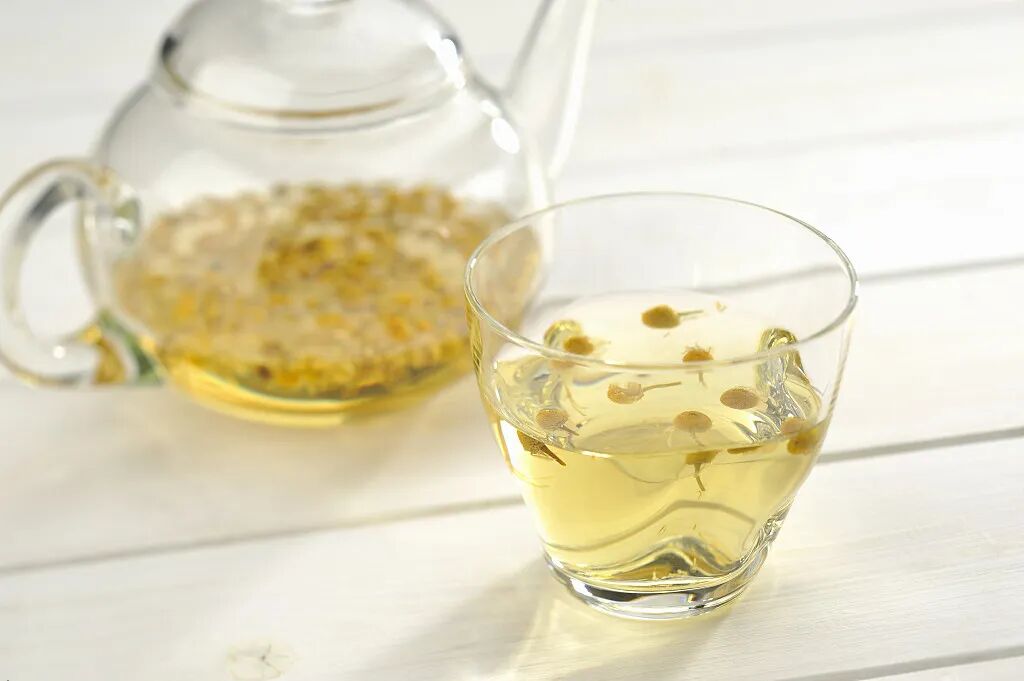 白菊花10克、绿茶适量,泡茶饮用,有疏风清热、明目醒脑的作用。适合于高血压、眩晕、风热头痛等的防治。