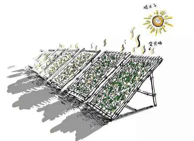 选好了叶,摊时还不可重叠,不可翻伤;失水不可过慢,否则茶芽变黑;失水亦不可过快,否则叶色变红。