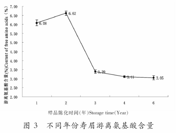 但是,寿眉中游离氨基酸的含量是其它茶叶的一倍,最高为6.62%,在第3年的时候然后快速下降,然后逐渐趋于稳定。