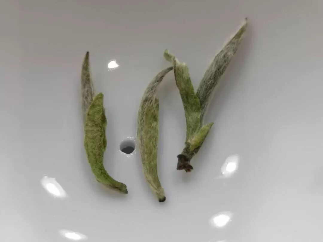 特点:香气清新,汤色淡黄,滋味鲜爽。由于白毫银针采摘时气温低,氨基酸含量高,因此它的鲜爽度最高。