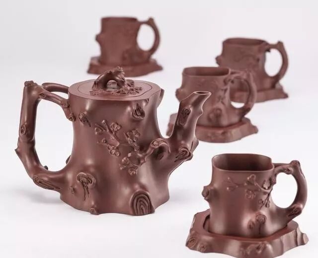 2.自然造型的砂壶,该写实就要写实,该写意就要写意。花器贴塑较多,整器要气势连贯,无生硬之感。注意壶身与贴塑的接触点有无细微的裂缝,以免日后断裂。