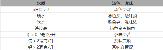水的硬度会影响pH值,使茶汤颜色变深,还会影响茶叶有效成分的溶解度。