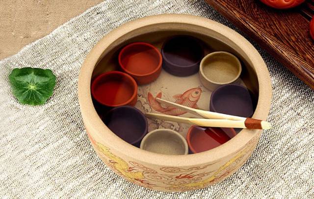所有茶具从外观上看必须是干净的,杯子里没有茶垢、杂质、指纹等之类的异物附着。许多人喜欢使用老物品,因为上面残留着岁月的痕迹,这当然是可以的。但是不包括残留的令人不悦的水渍或茶渣。