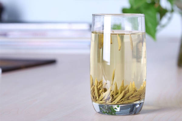 黄茶属轻发酵茶类,加工工艺近似绿茶,只是在干燥过程的前或后,增加一道“闷黄”的工艺,促使其多酚叶绿素等物质部份氧化。常见的有君山银针、霍山黄芽、蒙顶黄芽等。冲泡时,将少量的沸水冷却至90℃,根据个人口味放入适量茶叶,泡三十秒至一分钟,用壶冲水至八分满,待2-3分钟即可饮用,饮用后留1/3水量以便第二泡。