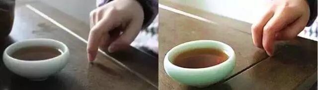 在接受斟茶时,要有回敬反应:喝茶是长辈的,用食指在桌上轻弹两下,表示感谢;小辈平辈的用食、中指在桌面轻弹二次表示感谢。