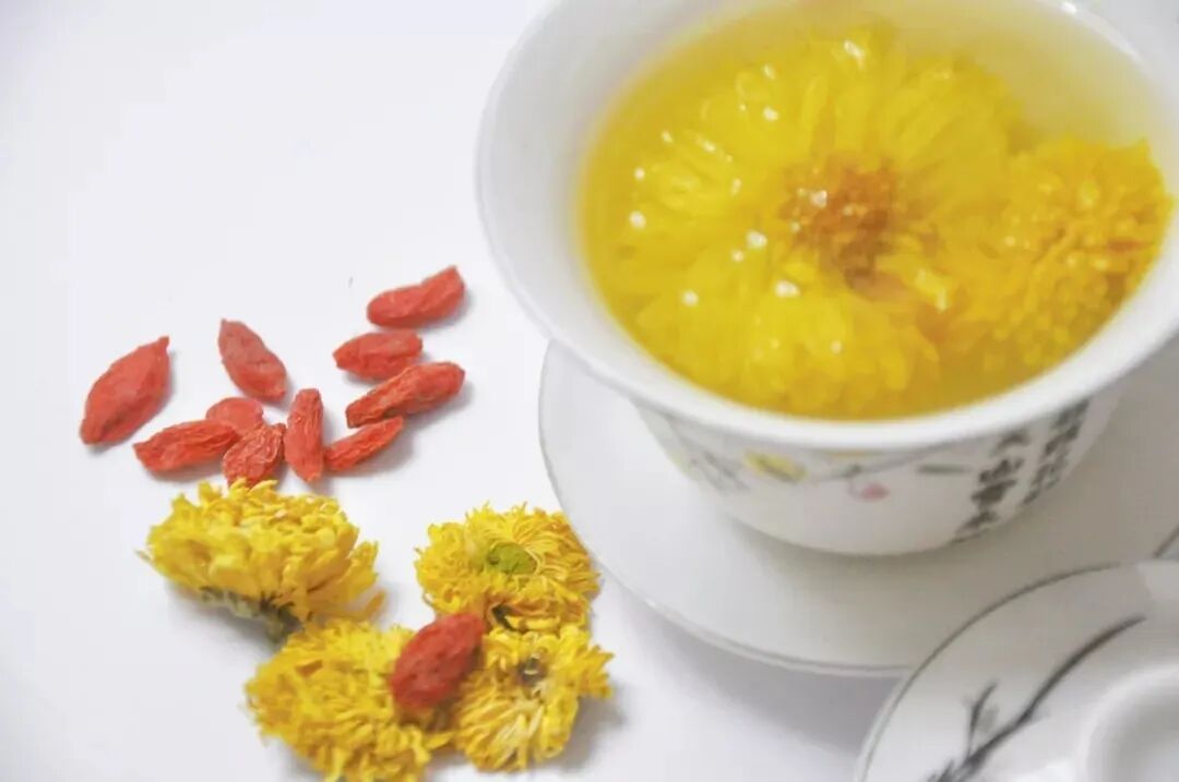 做法:将洛神花、甘草、白菊花放入钵中捣碎,将枸杞加入钵中一起混匀,装入袋中绑紧成茶包,将茶包放入杯中,冲入热水,放置3∼5分钟让其出味即可饮用,可连续冲泡。