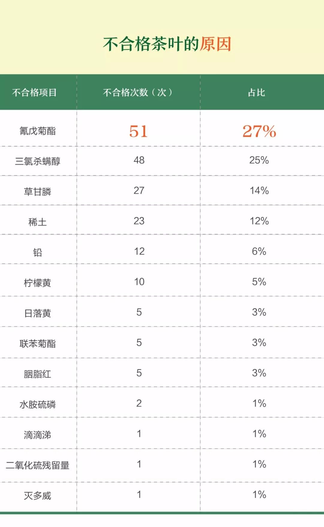 “如何将虫蛀率降到最低”似乎成为了茶叶种植界的必修课。反观不合格茶叶,当中以氰戊菊酯、三氯杀螨醇等杀虫类农药使用居多。氰戊菊酯是一种活性较高的拟除虫菊酯类的农药,杀虫谱较广,适用于棉花、果树、蔬菜、大豆、小麦等农作物。