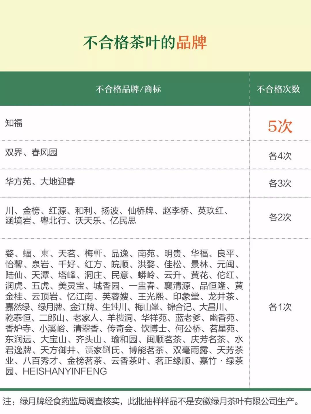 相反,与名声斐然的绿茶、红茶相比,白茶、黄茶显得相对小众。两者在不合格榜单上仅出现2次,却由此成为了“安全风险最低的茶叶”。