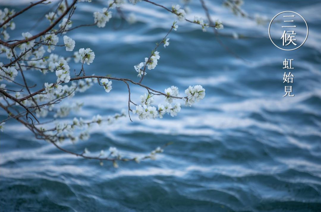 三候,虹始見。虹,陰陽交會之氣,純陰純陽則無,倘雲薄漏日,日穿雨影,則虹見。