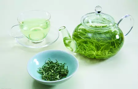 待开水凉至85℃左右,高提水壶,冲入适量的水(悬壶高冲),以覆盖茶叶为佳。摇香30秒左右,手捧玻璃杯,朝一个方向轻轻摇动玻璃杯,让茶叶湿润均匀受热。再用悬壶高冲的方式注入开水九分满(凤凰三点头式),35秒后,即可饮用。
