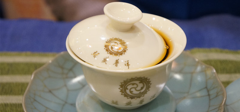 注水后将盖碗盖斜置于盖碗之上,留下些许空隙,使得茶汤与外界空气可保持适当接触。如此可使得茶汤的表现更为圆润。