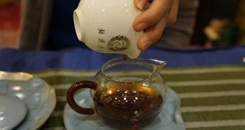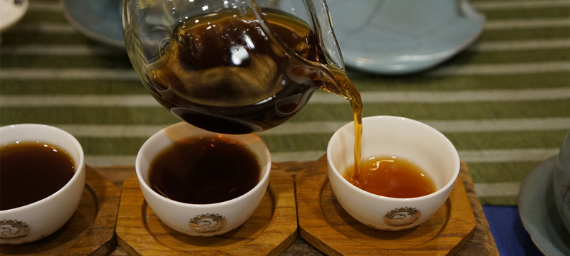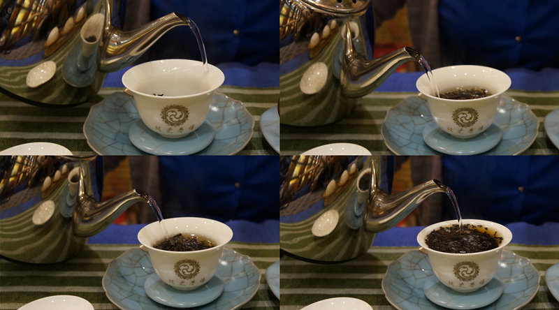 醒茶后即可开始冲泡,注水和出汤与润茶一致即可。需要注意的是由于散熟茶与开水的接触面积较大,在一开始其内含物就会以很快的速度析出,因此散熟茶冲泡的头两道应保持快进快出,其后可适当延长浸泡时间。出汤后分茶品饮即可。