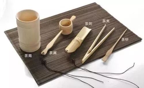 茶荷:用于盛放茶叶、观赏茶叶,将茶叶放入茶壶中。形状多以有引口的半球形,通常用竹、木、陶、瓷等制成。