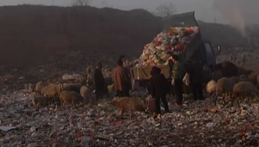 在六环外的垃圾场边,羊群们啃食着运来的厨余垃圾;