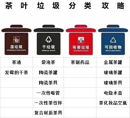 根据《条例》,对未将生活垃圾分类投放的个人可处以50至200元的罚款。当然一定也会有朋友说,上海实行垃圾分类和我们这些非上海地区的市民有什么关系?可别这么认为,到2020年全国就将对45个城市进行垃圾分类试点了,覆盖全国那是迟早的事,所以对于垃圾分类还是尽早开始了解、习惯比较好。既然话说到这儿,那你知道“茶”会产生哪些垃圾吗?对于这些垃圾你又是不是能够正确的进行分类呢?今天我们就来带大家仔细盘点一下“茶垃圾”的分类。