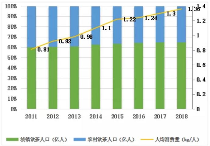 △2011年-2018年我国年人均消费茶叶数据表(来源:中国茶叶流通协会)