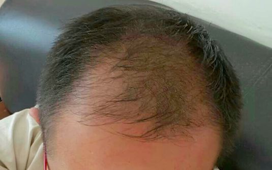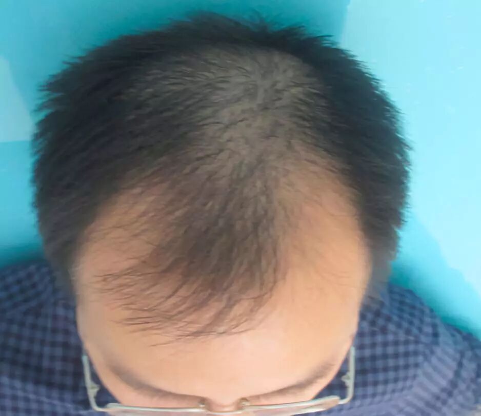 同样的雄脱,同样的头顶前半部稀疏,下面这位发友选择的是植发手术,我们还是先看看他脱发的样子。