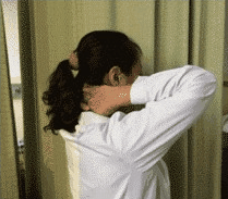 双手交叉紧贴颈后,用力顶头颈,头颈向后用力,相互抵抗5次。