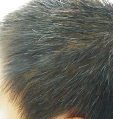 正常头发:乌黑浓密、光亮不易脱落。乃肾气充盛,精血充足的表现。