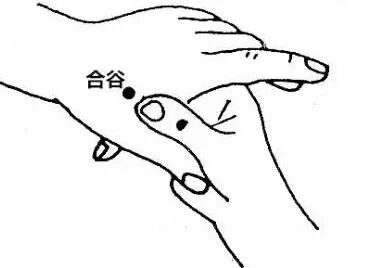 用右手使劲地揉左手的合谷穴,接着换手,使用左手使劲地揉右手的合谷穴。