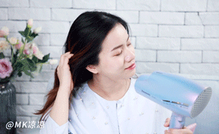 用中档的温柔风吹干整顶头发,远离头发15cm左右,顺便梳理柔顺,这样才能避免炸毛。