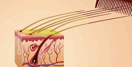 而且梳头方式要正确,倒着梳或者一梳到底都容易导致头发打结、易断,应该这样: