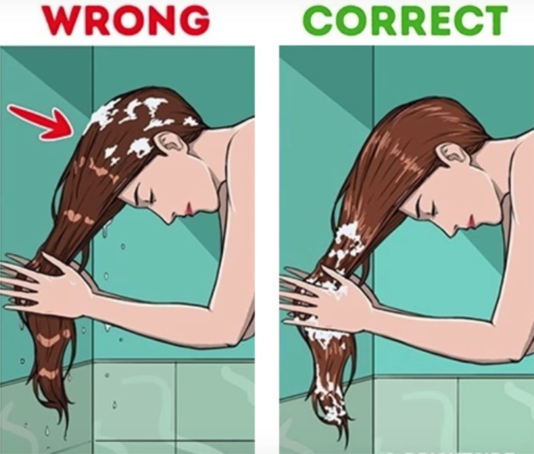正确姿势:从上至下捋着头发清洗,毛鳞片就不会胡乱翘起,缓解头发打结,变得柔顺不毛躁。