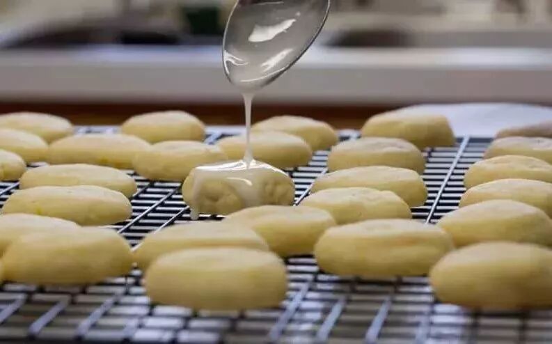 4、压扁的面饼放入烤架中,根据口味加上炼乳。