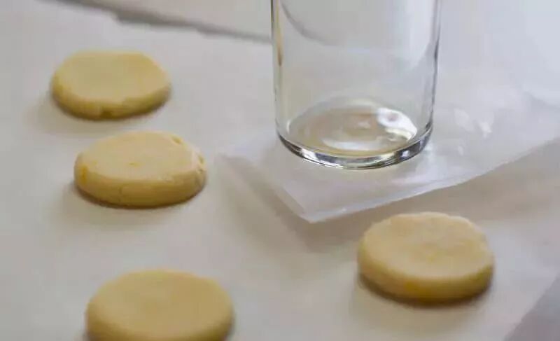 3、将小面团压扁成面饼。