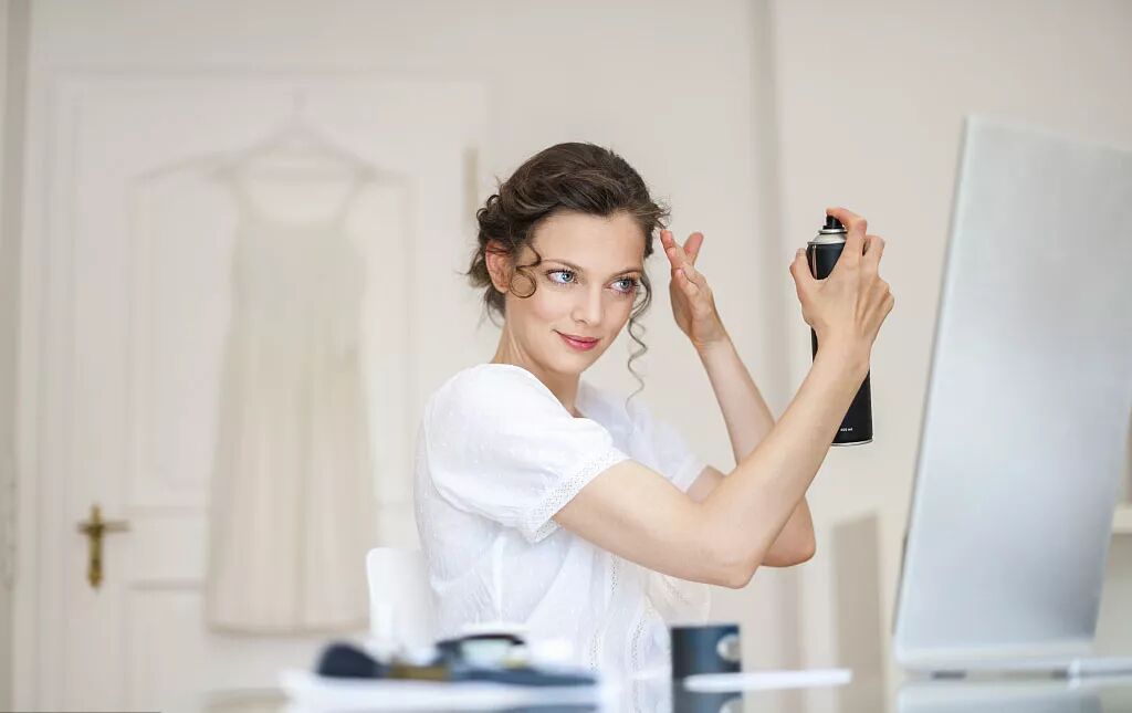 建议:头发全吹干定好型,提下根部,再对着发梢隔远一些喷发胶。