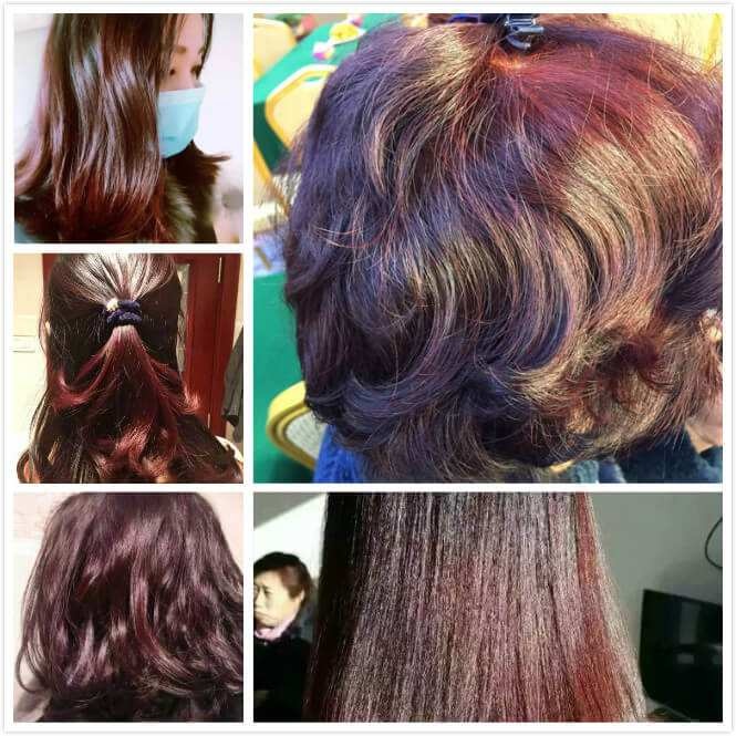 (2)植物染发着色力强,着色自然,不褪色,不变色,不粘皮肤,染色效果持久;不含阿摩尼亚,不需要双氧水,安全可靠。